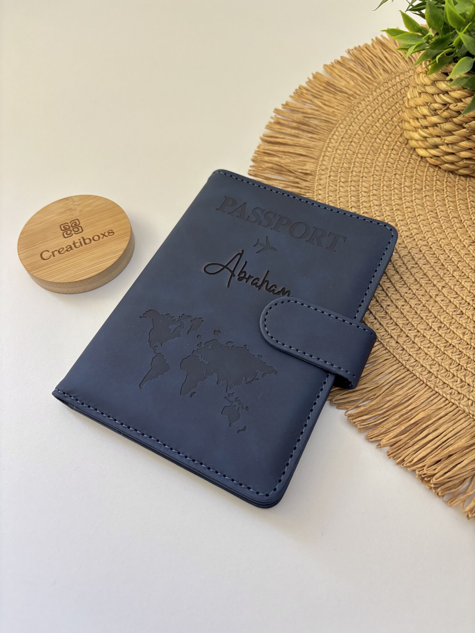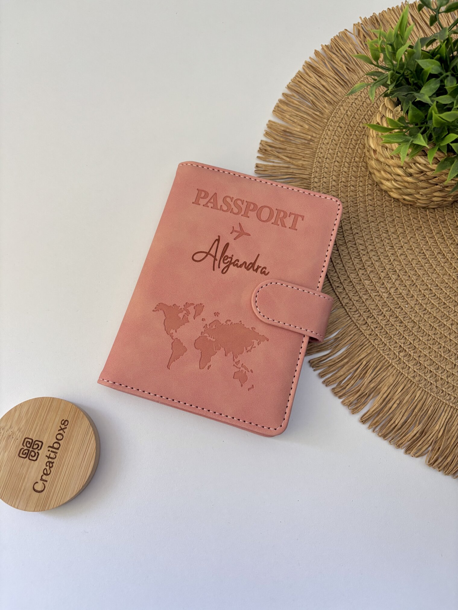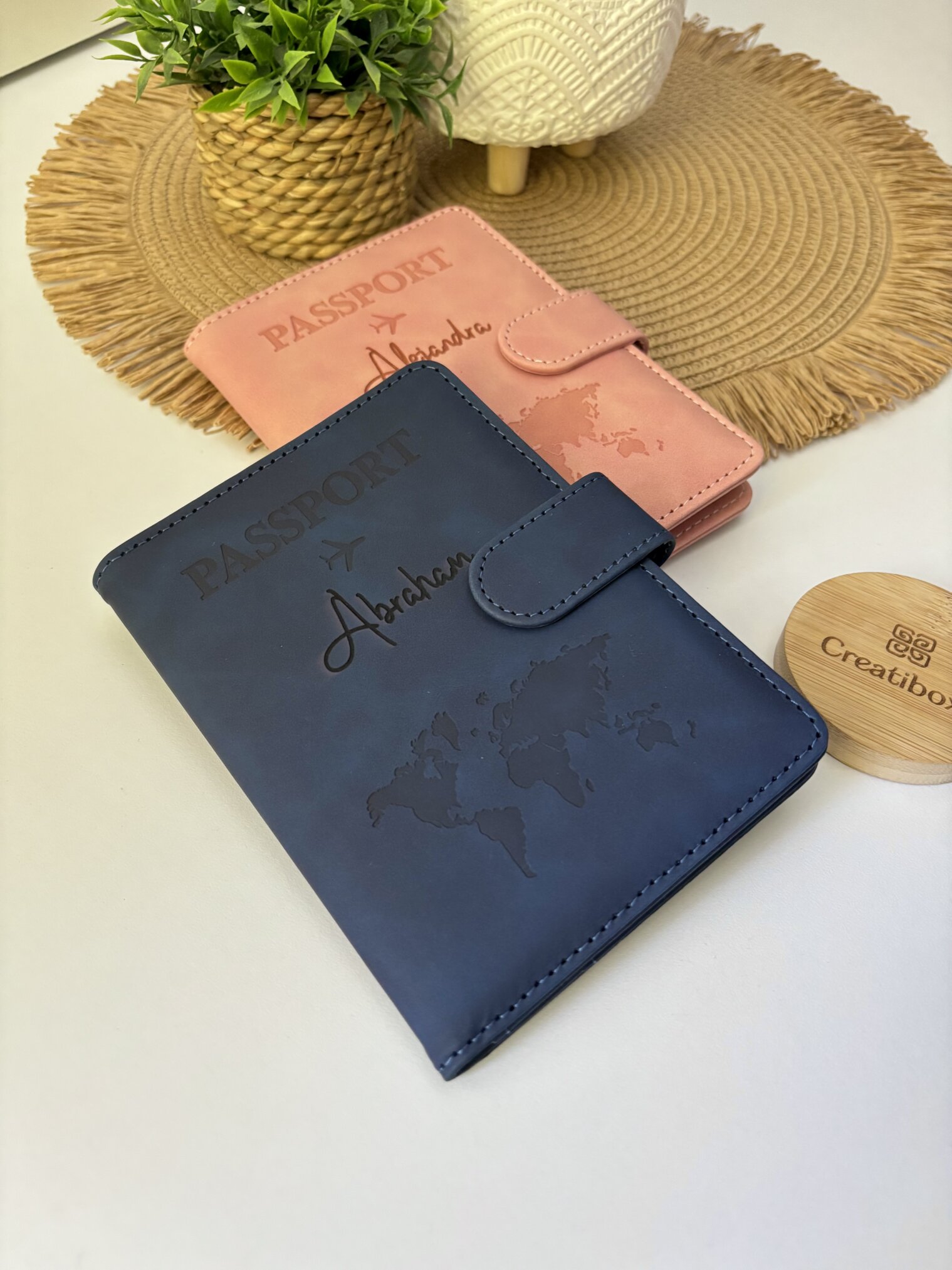 Funda porta pasaporte personalizado con espacios para dinero y tarjetas seguridad RFID